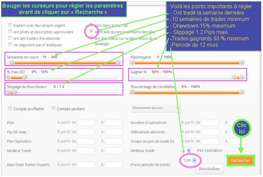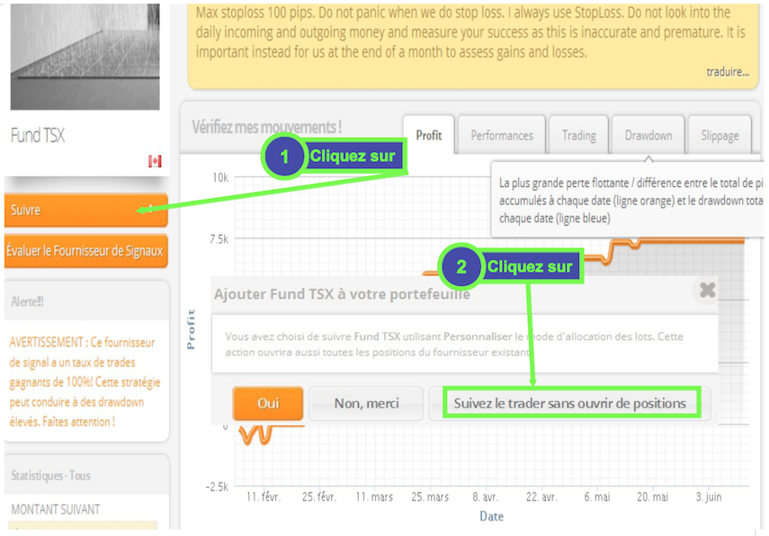 Choisissez quand même des traders qui ont eu très peu de pertes réelles sur les 100 derniers trades.
