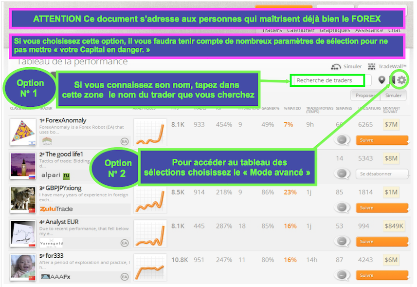 Important ! Vous devez être connecté sur votre compte Zulutrade pour choisir un Trader.