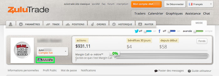 - soit en cliquant sur l'icône AAAFx à partir de votre compte Zulutrade