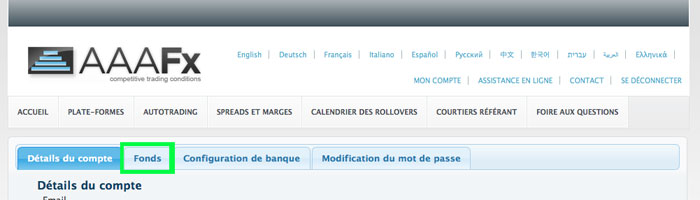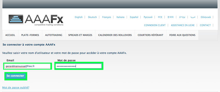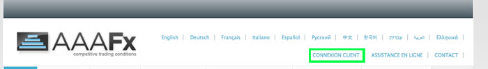 Sur la page de AAAFx, cliquez sur le lien <CONNEXION CLIENT>