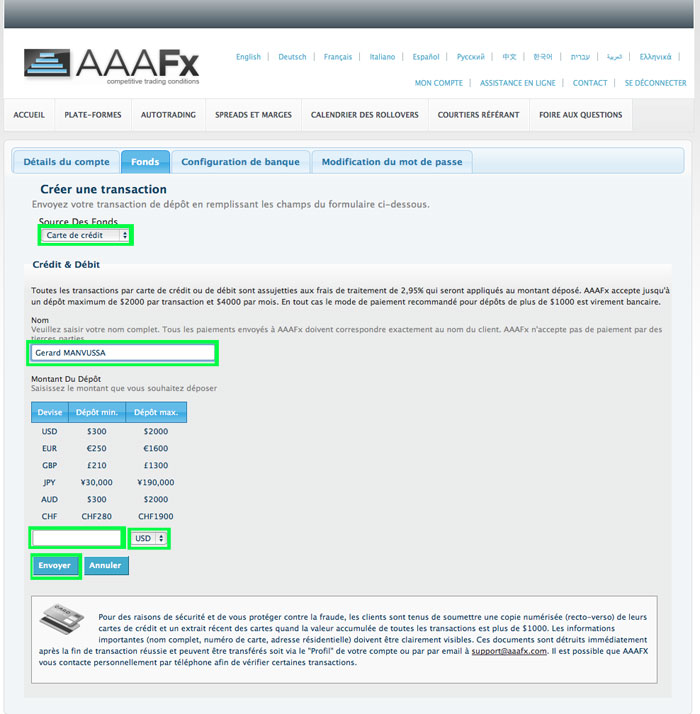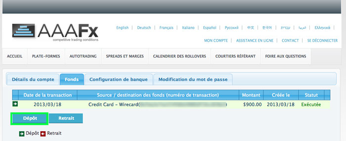 Pour faire un dépôt, il faut aller sur le site AAAFx.