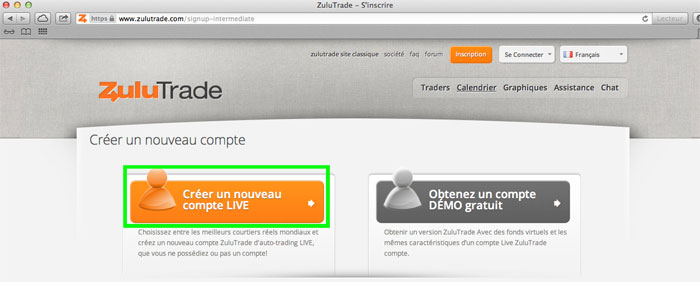 Après avoir cliqué sur le lien que vous avez reçu ou sur notre bannière vous arriverez sur la page de Zulutrade.