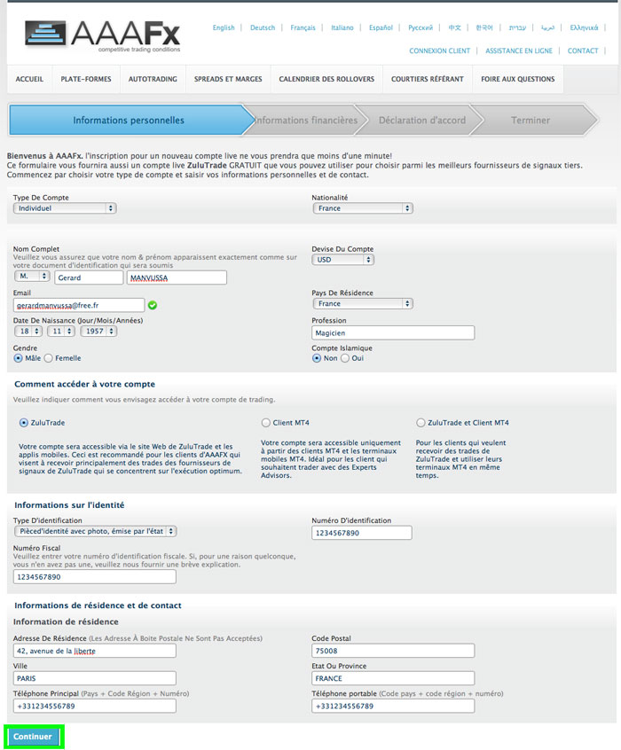 La page du courtier s'affiche, il suffit de renseigner le formulaire puis cliquer sur le bouton <Continuer>