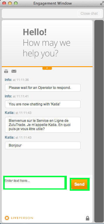 b) Une fenêtre de Chat s'ouvre et un opérateur vous accueille.